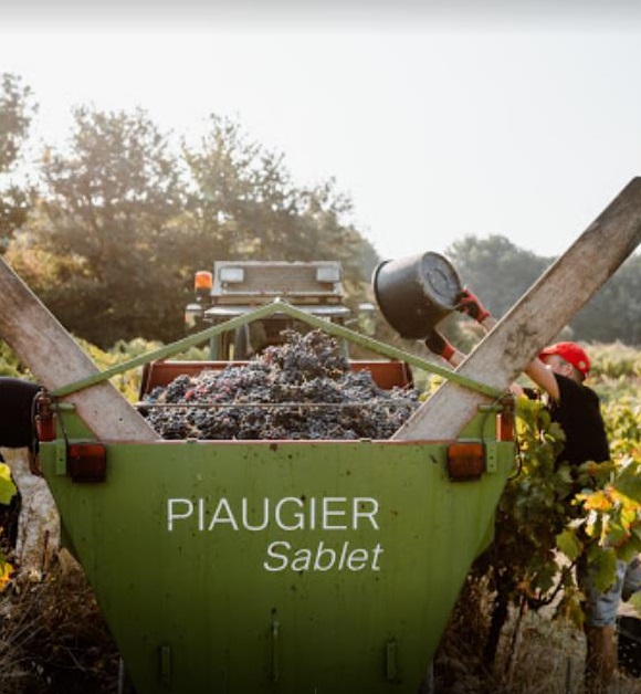 Los viñedos de Domaine de Piaugier (en los que la variedad de uva tinta dominante es la garnacha, complementada con syrah, mourvèdre, cariñena y counoise; mientras que en la blanca se incluyen clairette, viognier y rousanne entre otras) están situados en las colinas sobre los pueblos vinícolas de Sablet (12,5 ha.) y Gigondas (3,5 ha.). El hecho de que los viñedos estén repartidos en varias parcelas con diferentes suelos y orientaciones (este, oeste, sur) es considerado una gran ventaja por los propietarios, Jean-Marc y Sophie Autran, ya que les da la oportunidad de hacer vinos diferentes, cada uno con su propio carácter.